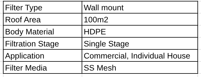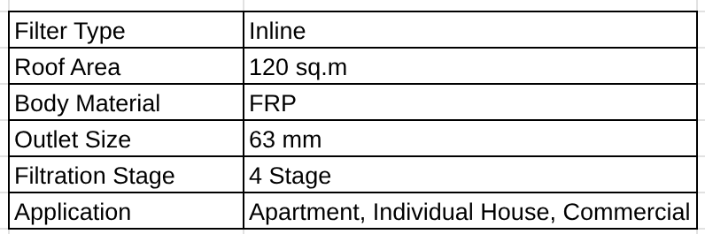 This open ended filter has auto flush out feature enabling self cleaning, with unique working principle. FL-80 is suitable for upto 120 sq.m rooftop area.