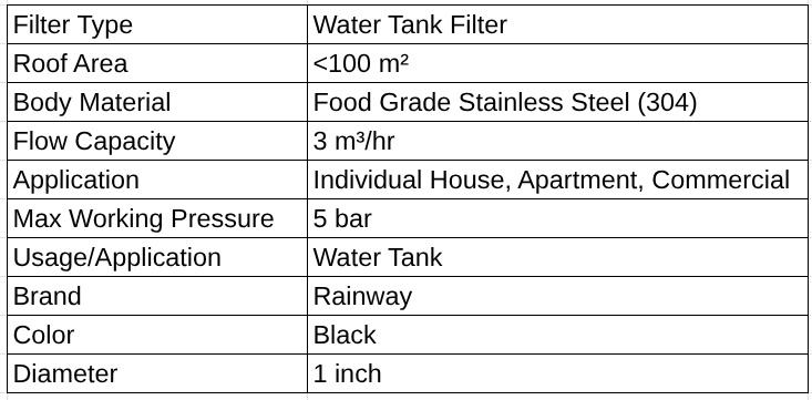 1.Rainway Overhead Water Tank Filter